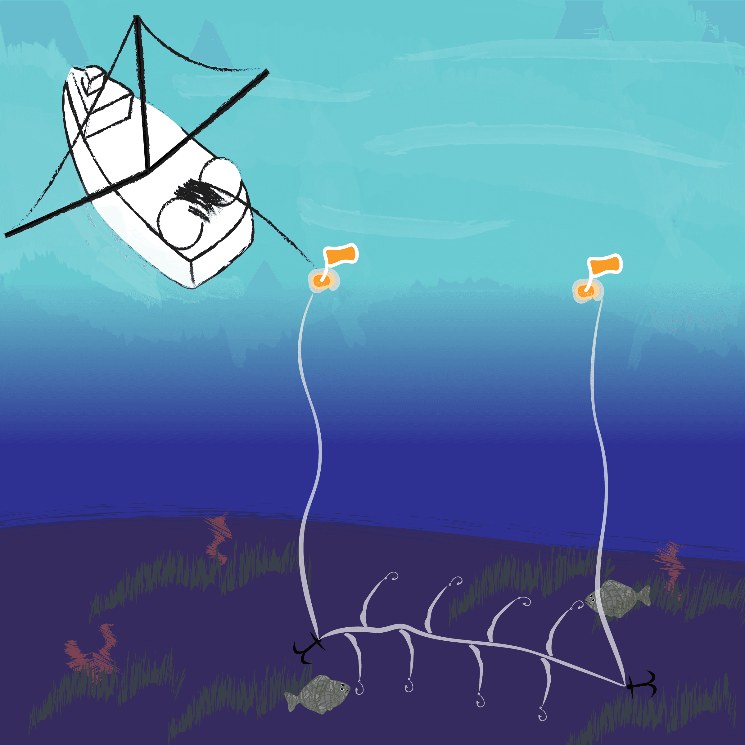 Once a longliner lays down their baited hooks on the ocean bottom, they may wait from 3 to 24 hours. Some areas have an active bottom with abundant sand fleas or isopods that will attack and kill fish on the lines, so in those areas the gear soaks for only a few hours. Other bottoms are rocky and shallow, with a lower risk of sand fleas harming the fish. After the gear has spent an appropriate time on the bottom, it is retrieved and hauled back in. This hook-and-line method allows unwanted species to be released alive, returning to their bottom habitat. The types of ocean bottom support vastly different fish species; depth and season also influence which species, including halibut, can be caught. Some of the interesting fish we catch while longlining are lingcod, China rockfish, red Irish lord, and ratfish.