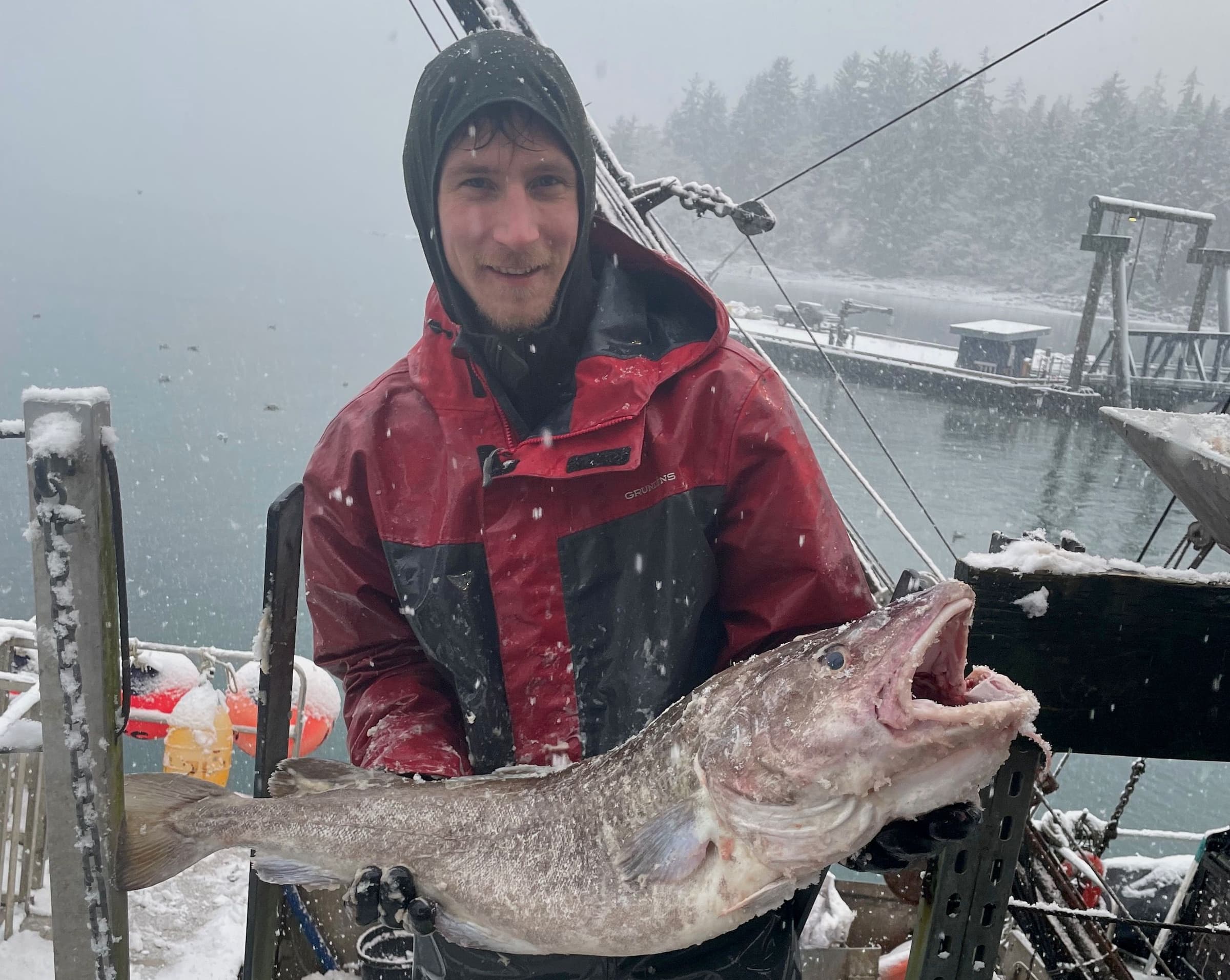 Captain Rob Ecker and his crew seem pretty excited to take a break from fishing. They pose for photos and hold up large snow-covered Pacific cod and halibut. I ask Rob what’s first on his list after he wraps up this offload. “Arizona,” he tells me with a smile.