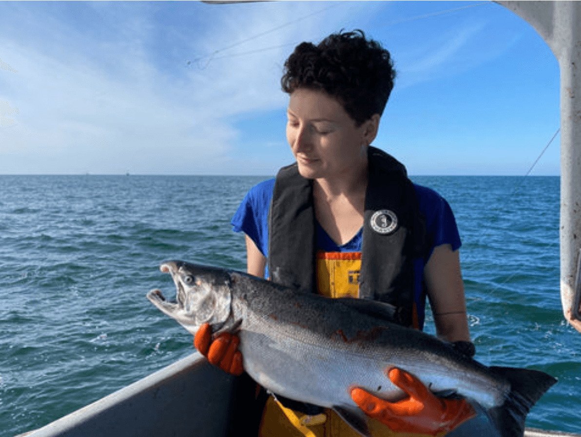 Iris and her husband, Chris, are technically self-employed, but Iris jokes that she and her family answer to another authority: fish. “Fish is boss,” she laughs, “They are the cornerstone of our lives. Everything we have and do is in thanks to the fish.” Indeed, Iris and Chris designed their entire lives around the pursuit of catching fish as independent owner-operators of the 47-foot sailboat troller, the F/V Orion.