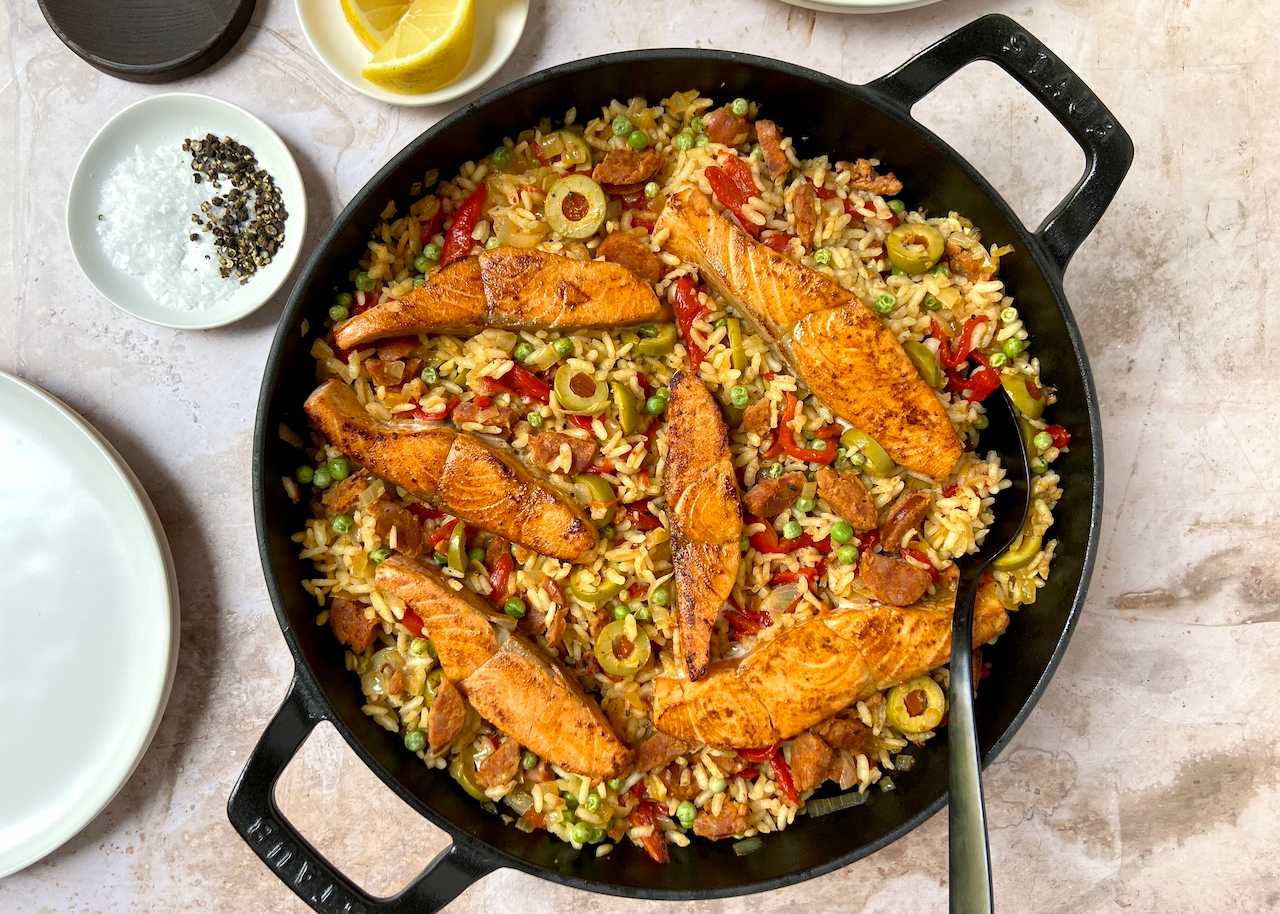 Rich, buttery salmon is simmered in a spicy tomato sauce — arrabbiata in Italian, which translates to “angry.” Typically, arrabbiata sauce is made from canned San Marzano tomatoes but we’ve taken advantage of great-quality tomato sauces found on supermarket shelves and added plenty of garlic and red pepper flakes. Suggested recipe for both Salmon and Premium Salmon Subscriptions.
