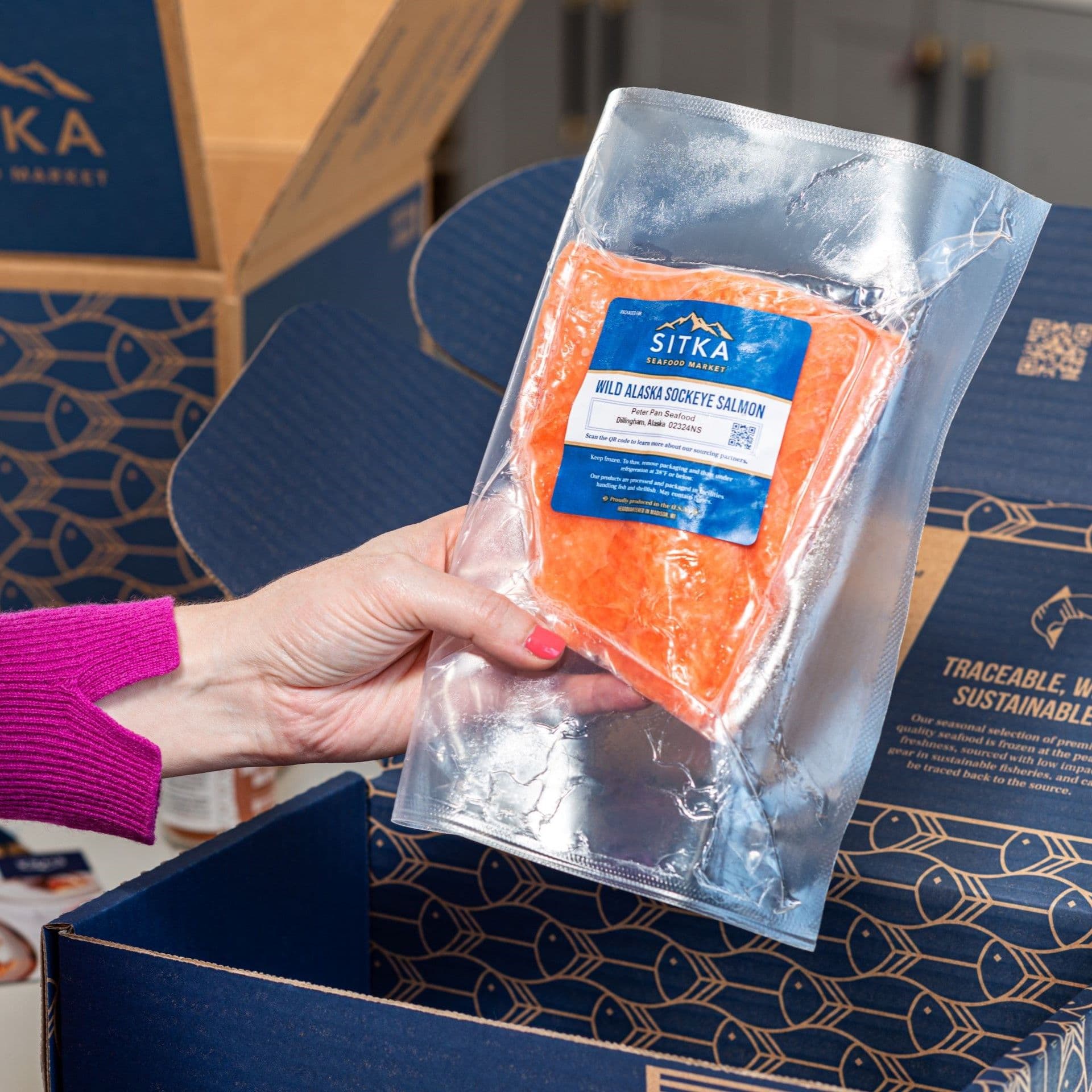 Customize a box from our most popular seafood selections like sockeye salmon, halibut, shrimp, pacific cod, and more.