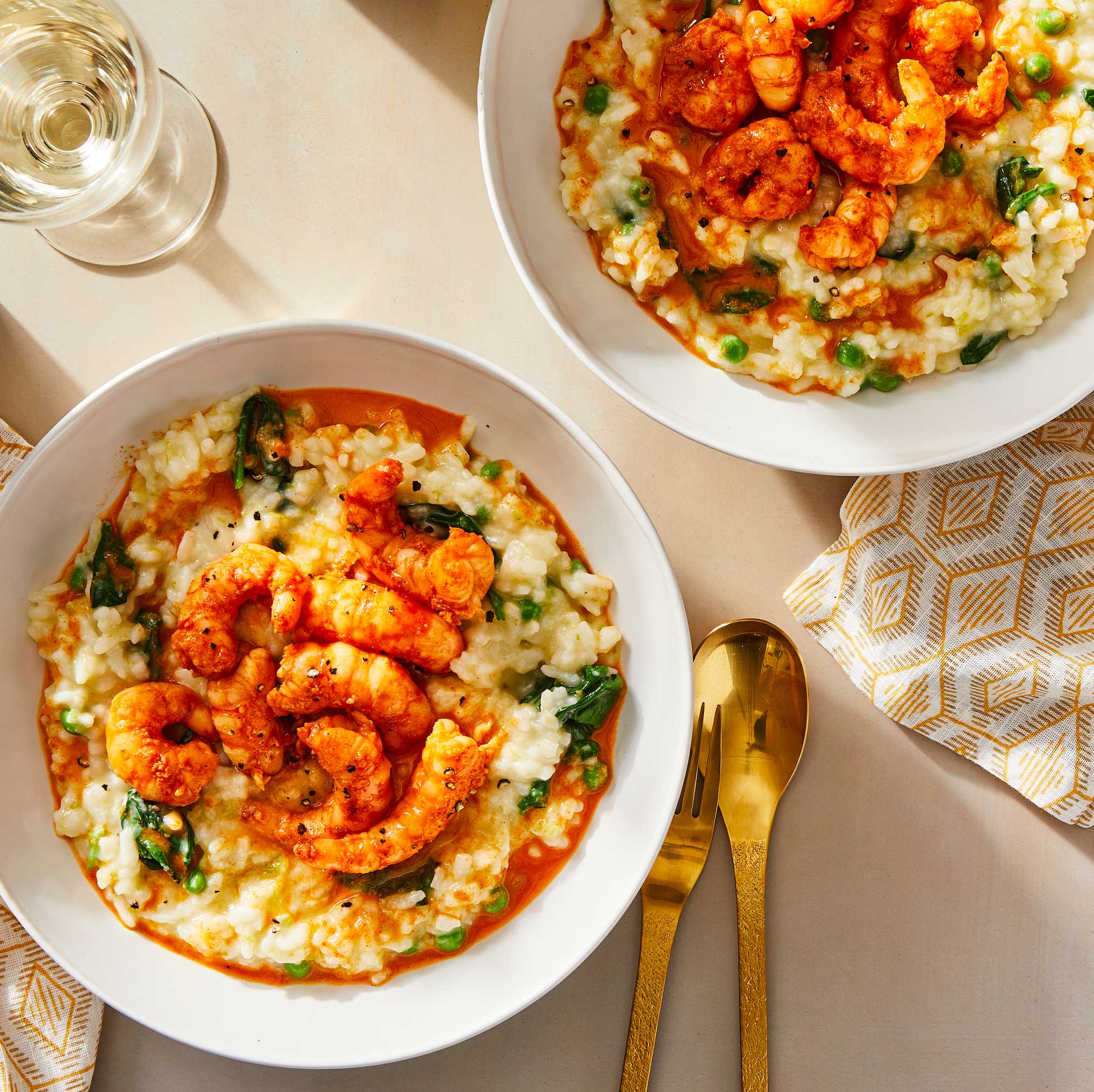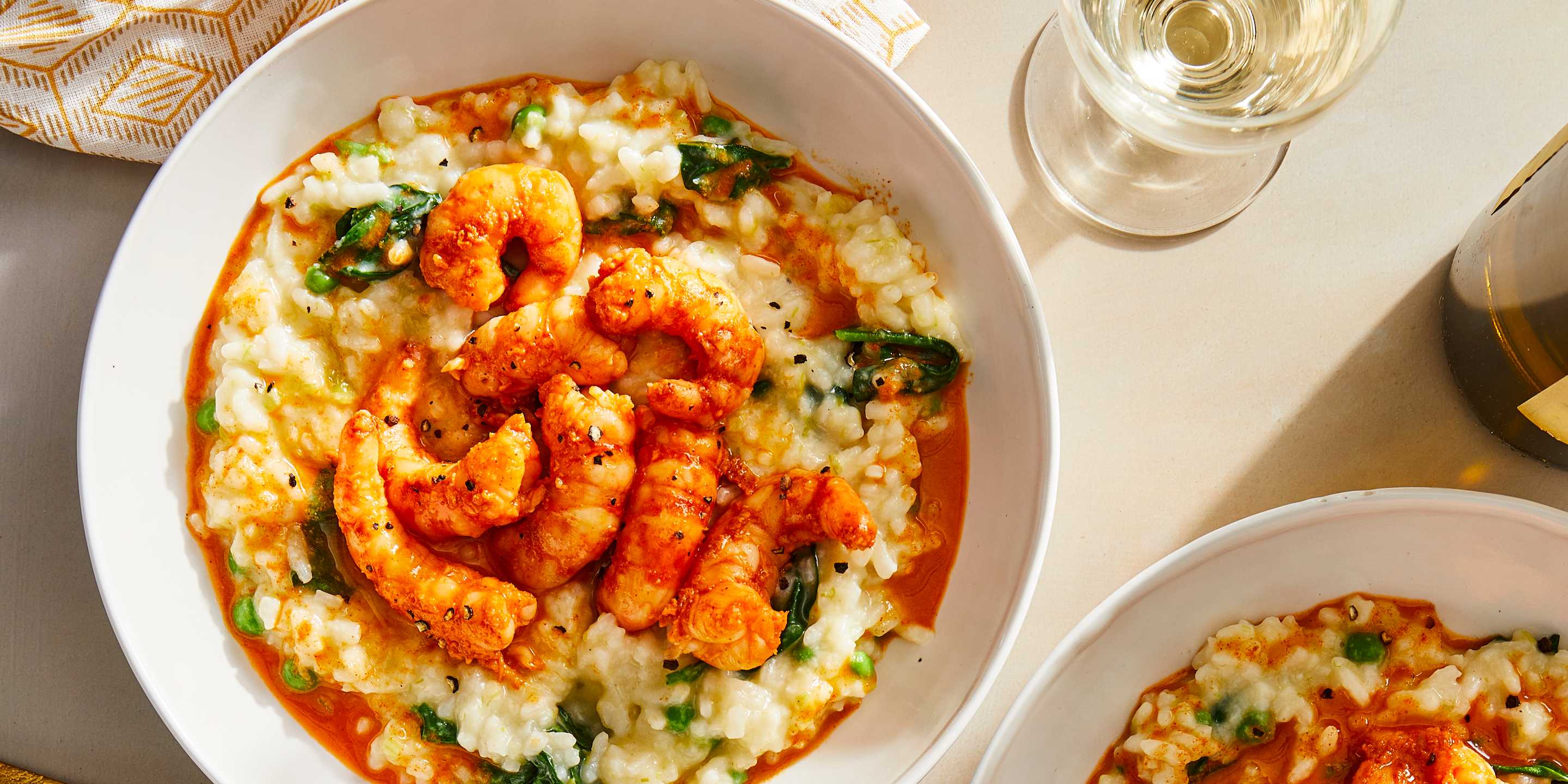 Spot shrimp add delicate sweetness to this luscious risotto. Cooking the rice in seafood stock infuses the dish with flavor.